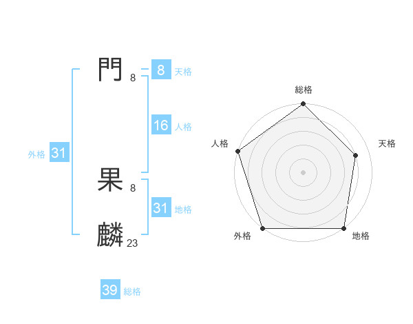 門 果麟さんの外格は31画の5点!