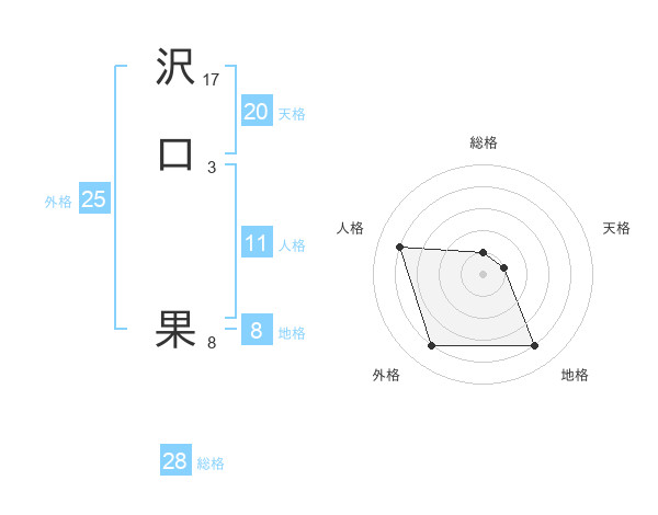 沢口 果さんの天格は20画の1点!