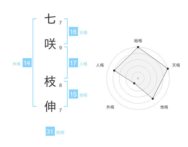七咲 枝伸さんの総格は31画の5点!