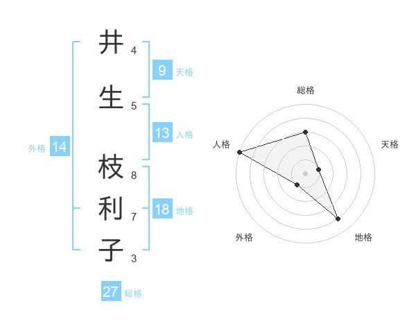井生 枝利子さんの総格は27画の3点!