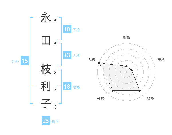永田 枝利子さんを姓名の画数から五運を鑑定