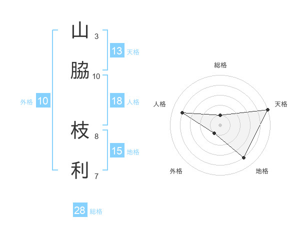 山脇 枝利さんの総格は28画の1点!
