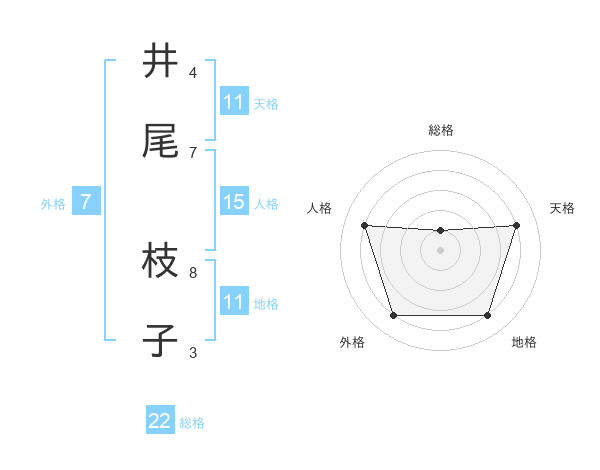 井尾 枝子さんの総格は22画の1点!