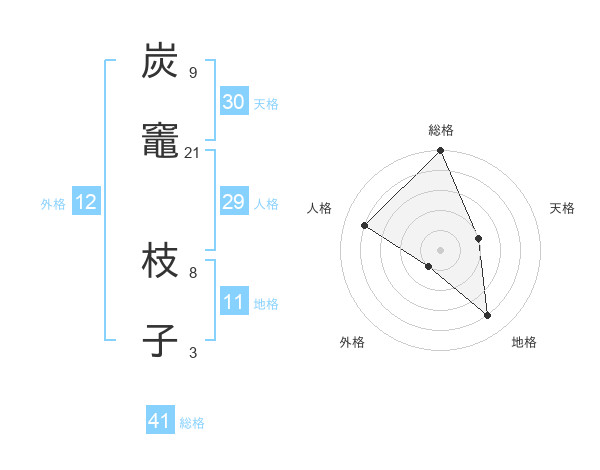 炭竈 枝子さんを姓名の画数から五運を鑑定