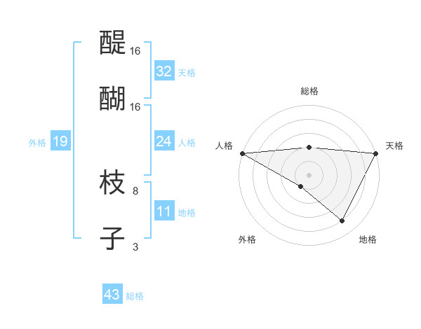 醍醐 枝子さんを姓名の画数から五運を鑑定