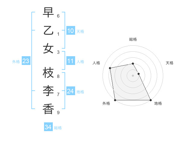 早乙女 枝李香さんを姓名の画数から五運を鑑定