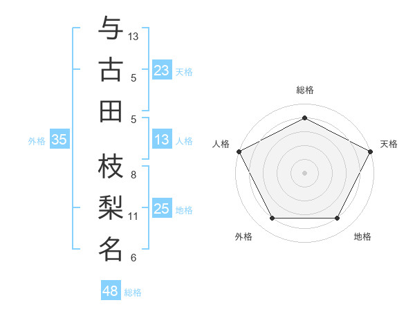 与古田 枝梨名さんを姓名の画数から五運を鑑定