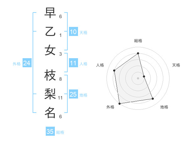 早乙女 枝梨名さんを姓名の画数から五運を鑑定
