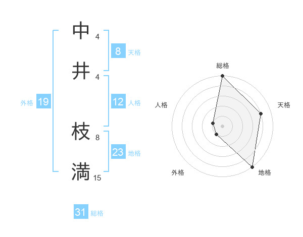 中井 枝満さんの総格は31画の5点!