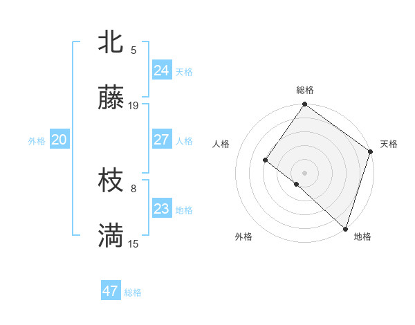 北藤 枝満さんの総格は47画の5点!
