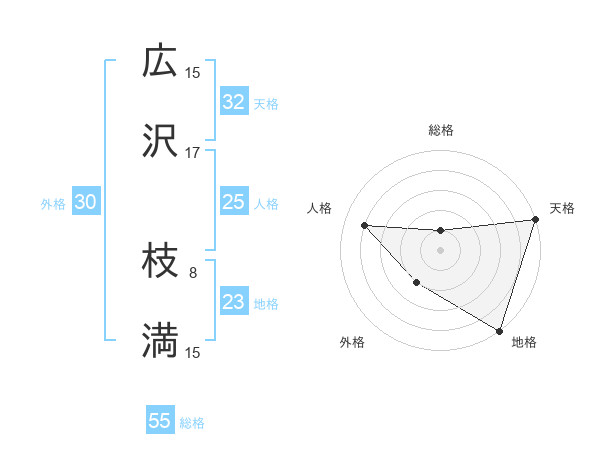 広沢 枝満さんの天格は32画の5点!