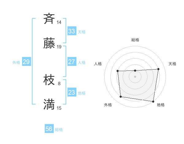 斉藤 枝満さんの外格は29画の4点!