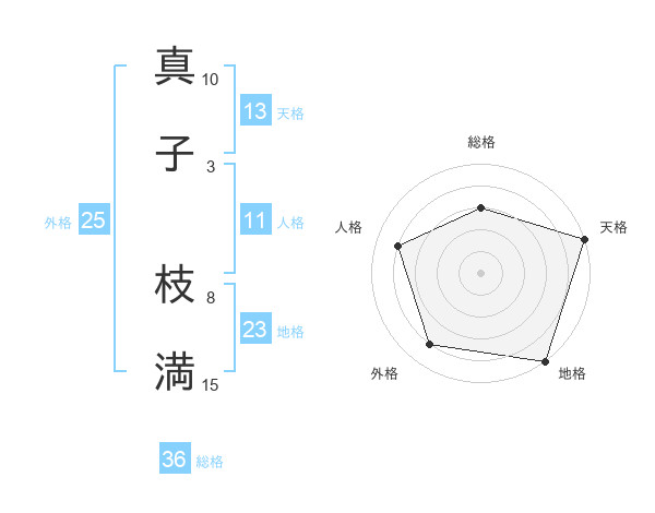 真子 枝満さんの天格は13画の5点!