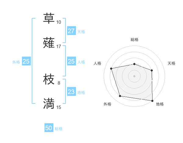 草薙 枝満さんを姓名の画数から五運を鑑定