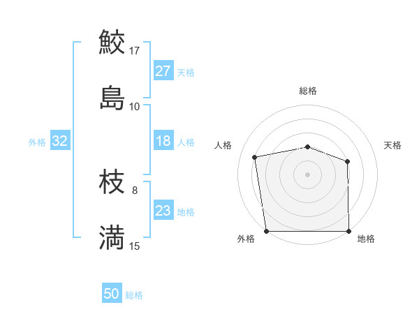 鮫島 枝満さんを姓名の画数から五運を鑑定