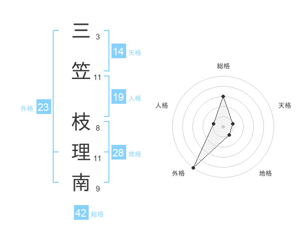 三笠 枝理南さんを姓名の画数から五運を鑑定