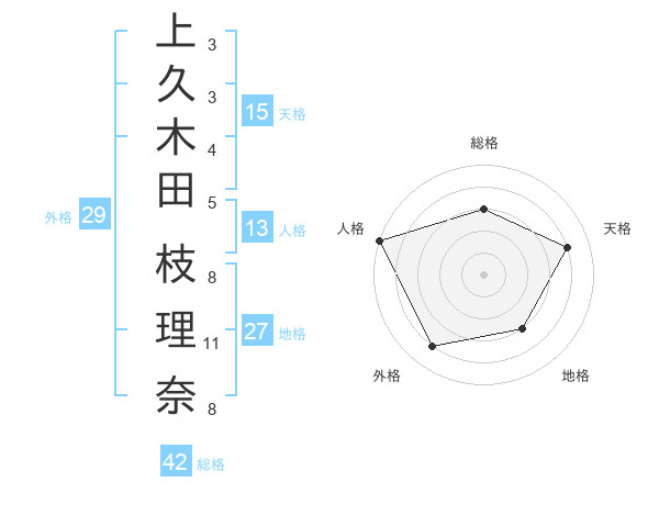 上久木田 枝理奈さんの天格は15画の4点!