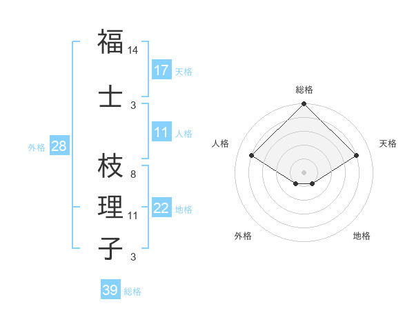 福士 枝理子さんを姓名の画数から五運を鑑定