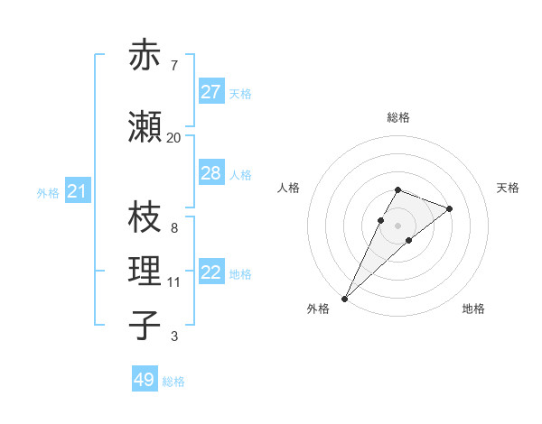 赤瀬 枝理子さんを姓名の画数から五運を鑑定