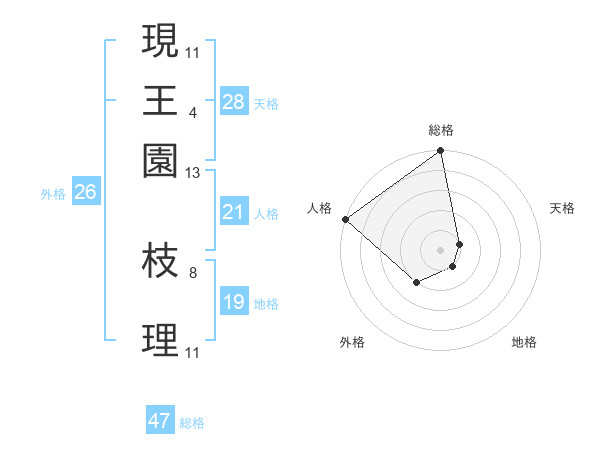 現王園 枝理さんを姓名の画数から五運を鑑定