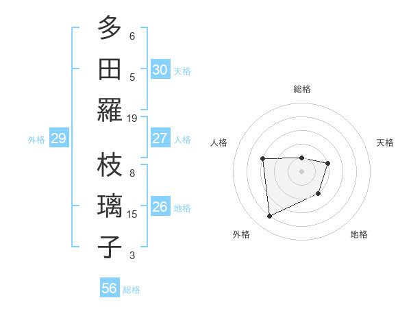 多田羅 枝璃子さんを姓名の画数から五運を鑑定