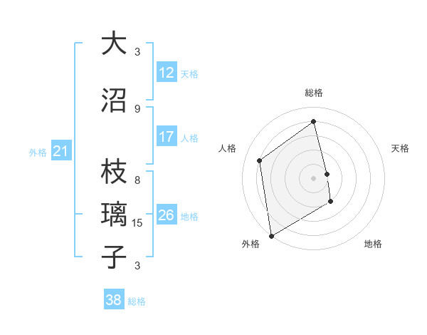 大沼 枝璃子さんの総格は38画の4点!