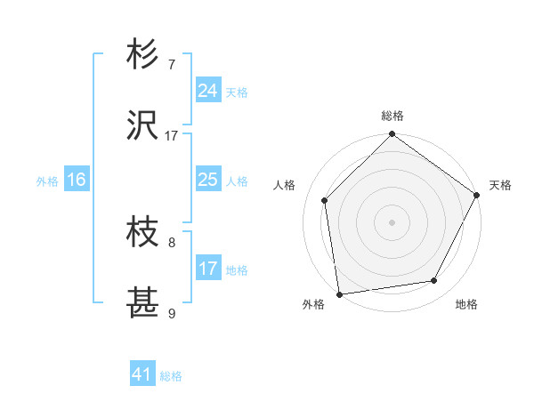 杉沢 枝甚さんの総格は41画の5点!