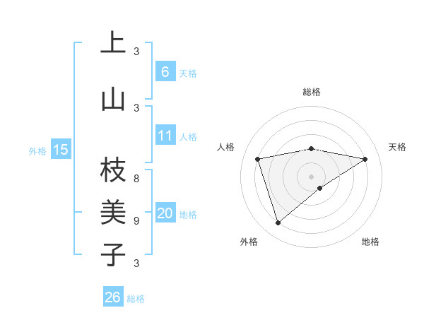 上山 枝美子さんを姓名の画数から五運を鑑定