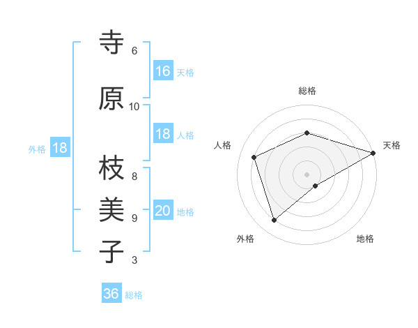 寺原 枝美子さんの天格は16画の5点!