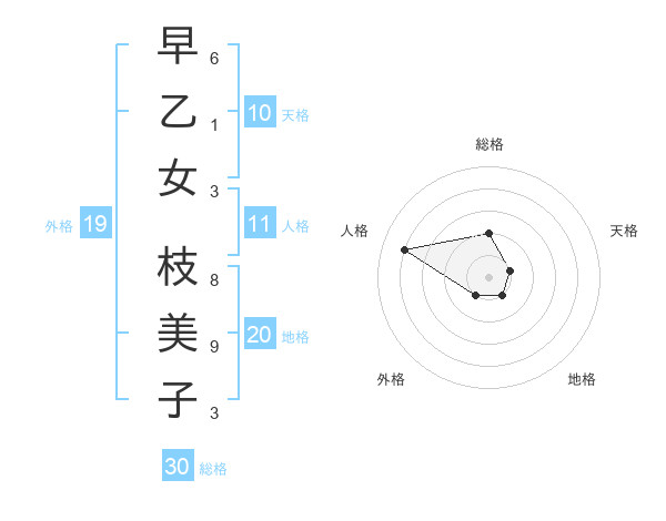 早乙女 枝美子さんを姓名の画数から五運を鑑定