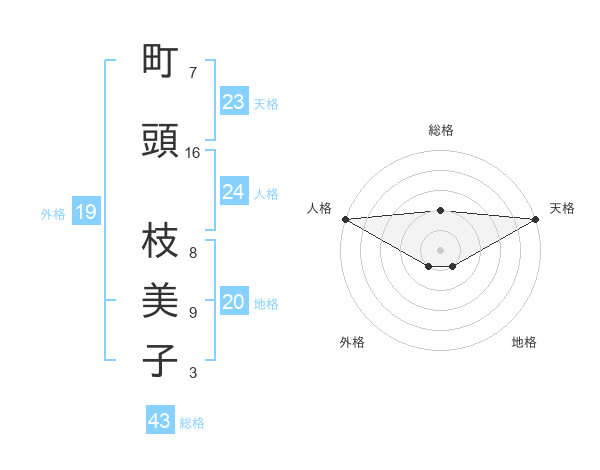 町頭 枝美子さんの総格は43画の2点!