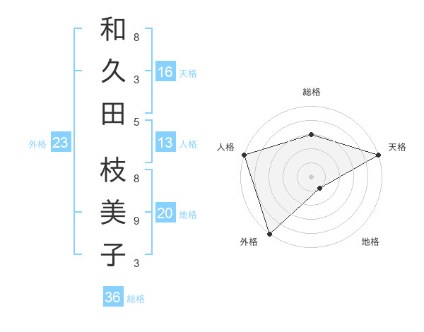 和久田 枝美子さんの外格は23画の5点