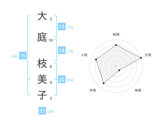 大庭 枝美子さんの総格は33画の4点!