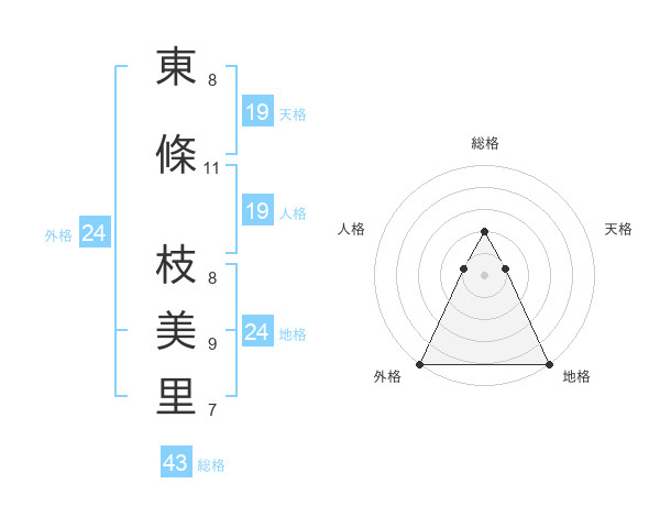 東條 枝美里さんを姓名の画数から五運を鑑定