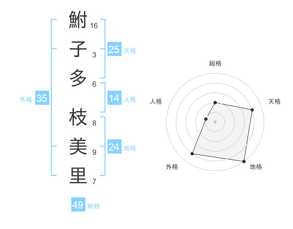 鮒子多 枝美里さんの天格は25画の4点!