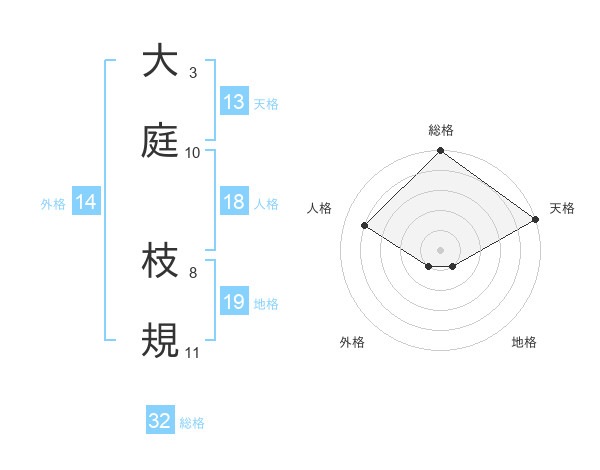 大庭 枝規さんを姓名の画数から五運を鑑定