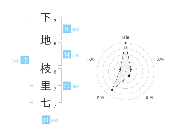 下地 枝里七さんの総格は31画の5点!
