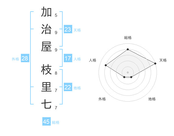 加治屋 枝里七さんを姓名の画数から五運を鑑定