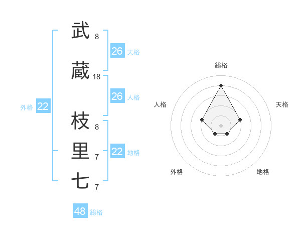 武蔵 枝里七さんの外格は22画の1点!