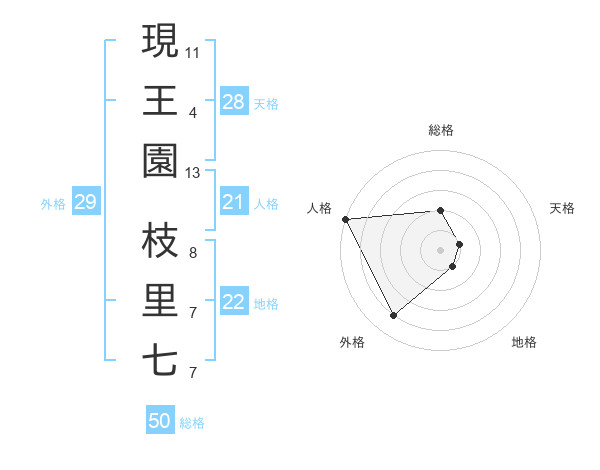現王園 枝里七さんを姓名の画数から五運を鑑定