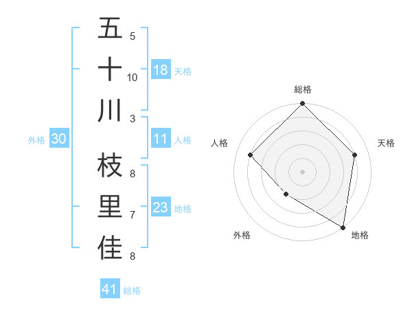 五十川 枝里佳さんを姓名の画数から五運を鑑定