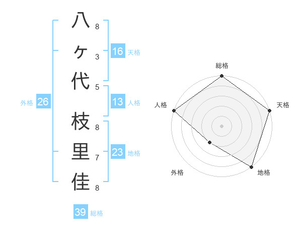 八ヶ代 枝里佳さんの地格は23画の5点!