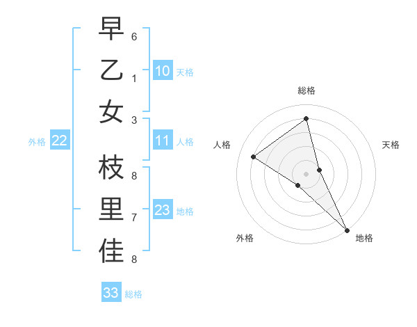 早乙女 枝里佳さんを姓名の画数から五運を鑑定