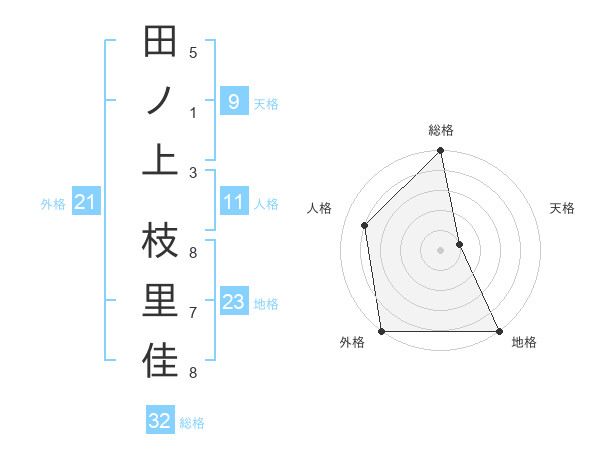 田ノ上 枝里佳さんを姓名の画数から五運を鑑定