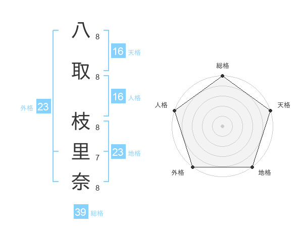 八取 枝里奈さんの外格は23画の5点!