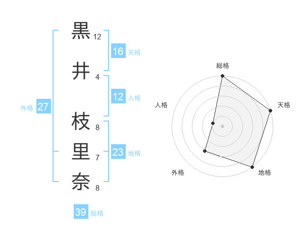 黒井 枝里奈さんを姓名の画数から五運を鑑定