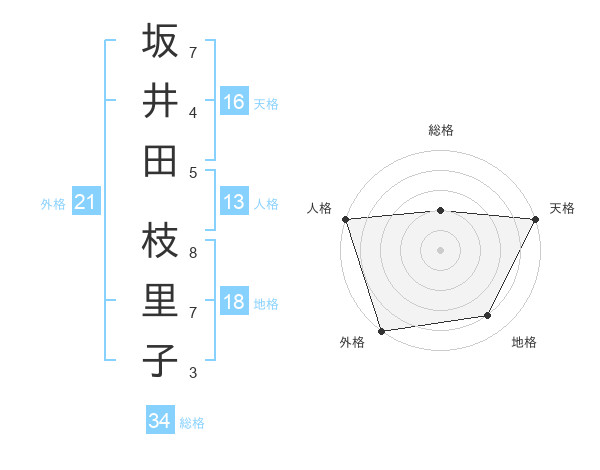 坂井田 枝里子さんを姓名の画数から五運を鑑定