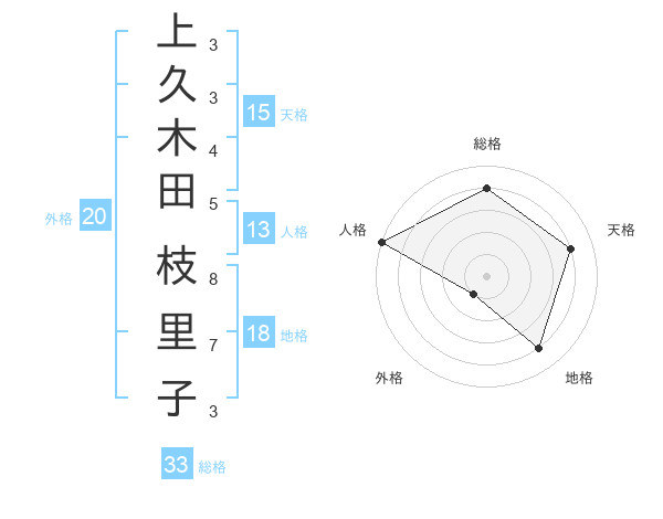上久木田 枝里子さんを姓名の画数から五運を鑑定