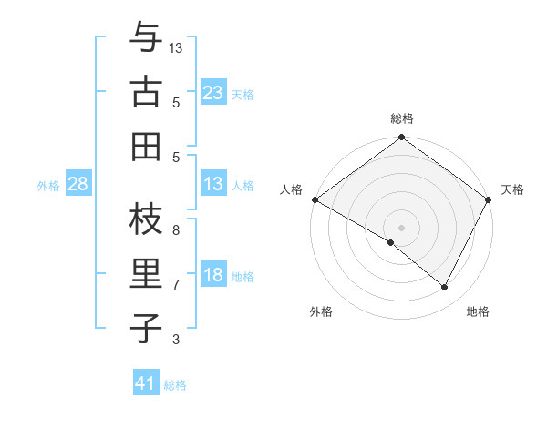 与古田 枝里子さんを姓名の画数から五運を鑑定