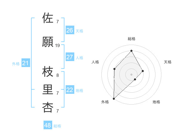 佐願 枝里杏さんを姓名の画数から五運を鑑定